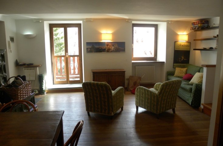 Courmayeur, frazione Dolonne, in prossimità degli ovetti, proponiamo in locazione per la stagione invernale grazioso appartamento su due livelli composto da soggiorno, cucinotto e bagno, al piano superiore tre camere e un bagno. Cantina e posto auto esterno. DISPONIBILE PER IL MESE DI LUGLIO
