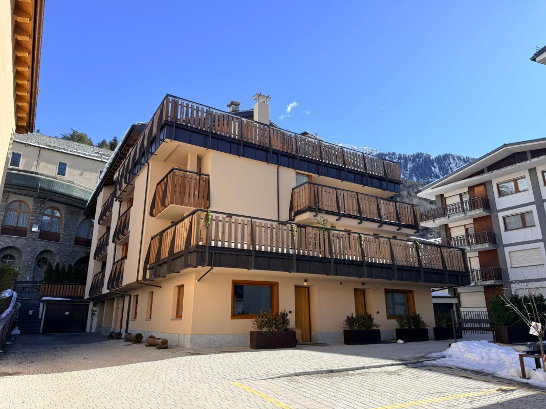 Courmayeur, in prossimità della zona pedonale, proponiamo in vendita un appartamento di recente ristrutturazione con rifiniture interne di pregio. La soluzione, al secondo piano è composta da ingresso, un luminoso soggiorno con cucina a vista, due camere, due bagni, un ampio terrazzo esposto a sud ovest e due balconi. Completano la proprietà una cantina e un box auto. Il Condominio è stato oggetto di recente riqualificazione con rifacimento delle facciate e del cappotto.